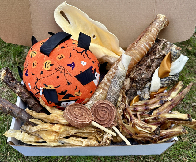 Trachée de bœuf - Tresse de bœuf/poisson - Oreille de bœuf soufflée - Sucette de canard - Cou de poulet - Oreille de lapin - Bâtonnet de Cabillaud - Poumon de bœuf - Cou de dinde - Patte de canard - Balle spéciale Halloween